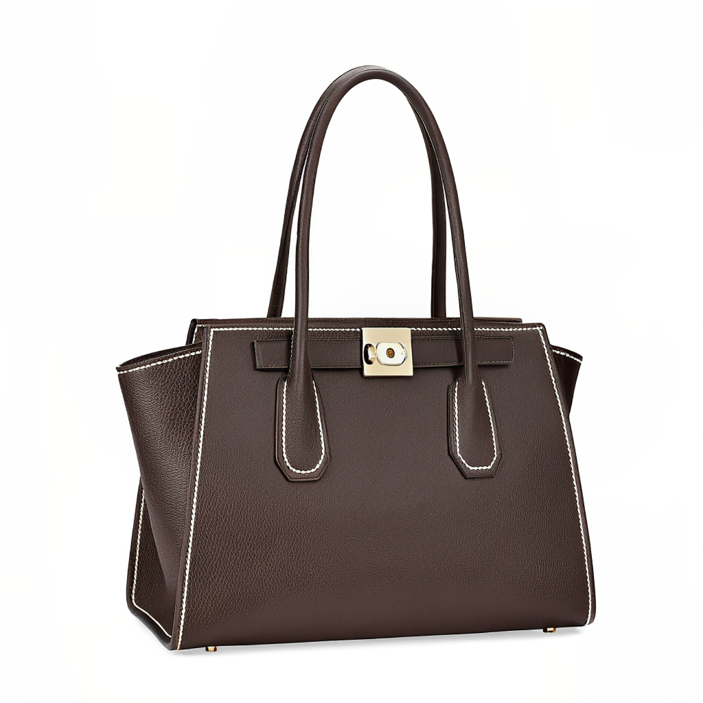 Elevate your everyday style with the BrillianceBling Large Structured Tote Bag, crafted from premium grained cowhide leather. Designed with both elegance and practicality in mind, this bag features a spacious interior with one secure zipper compartment and two convenient slip compartments, allowing you to keep your essentials organized at all times.